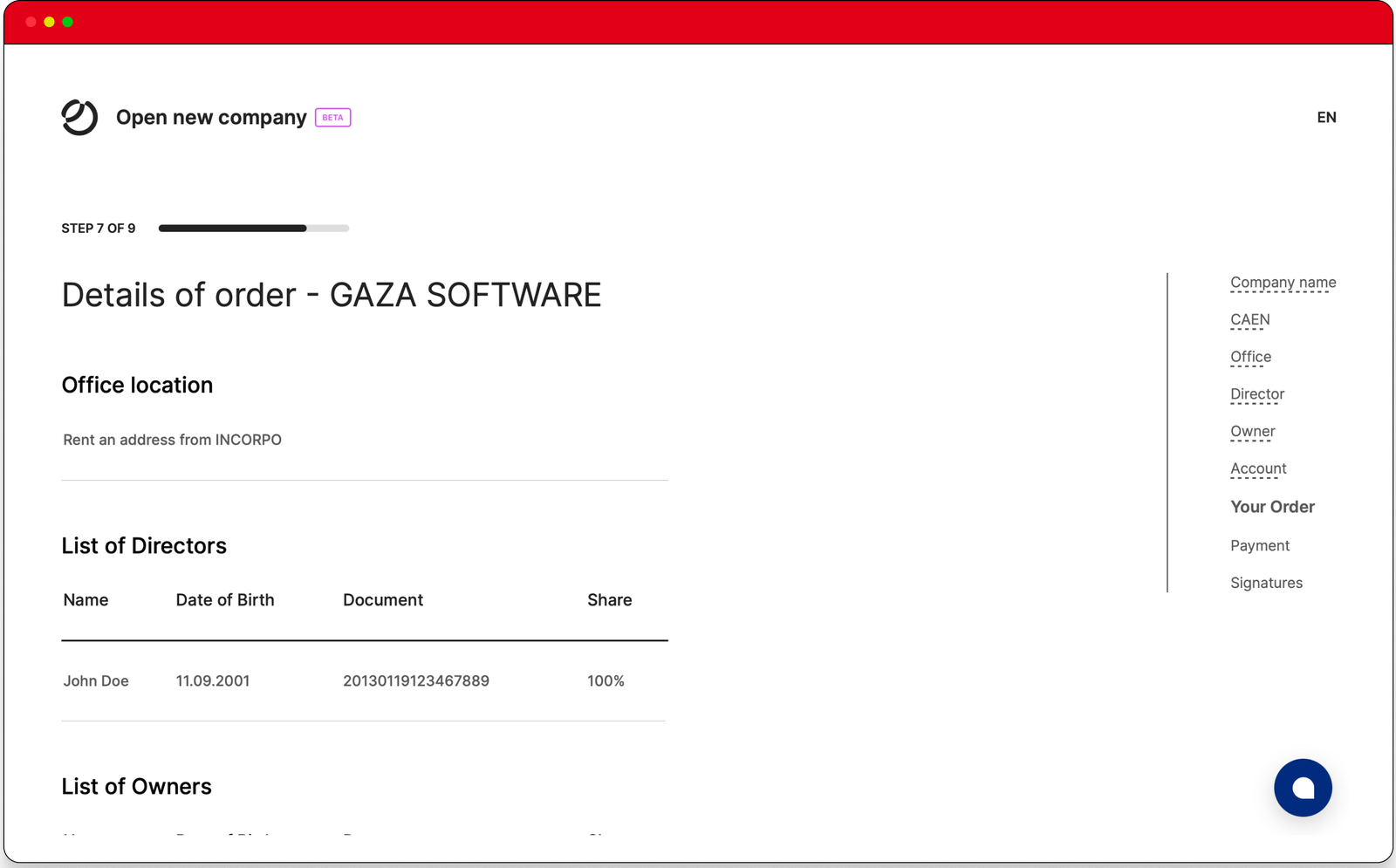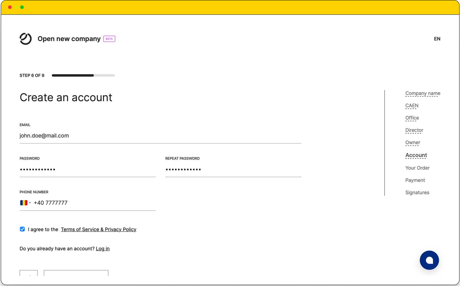 Yes, you do. The company registration requires reading and signing the forms required by the registry, which we'll produce for you from templates designed by experienced lawyers.