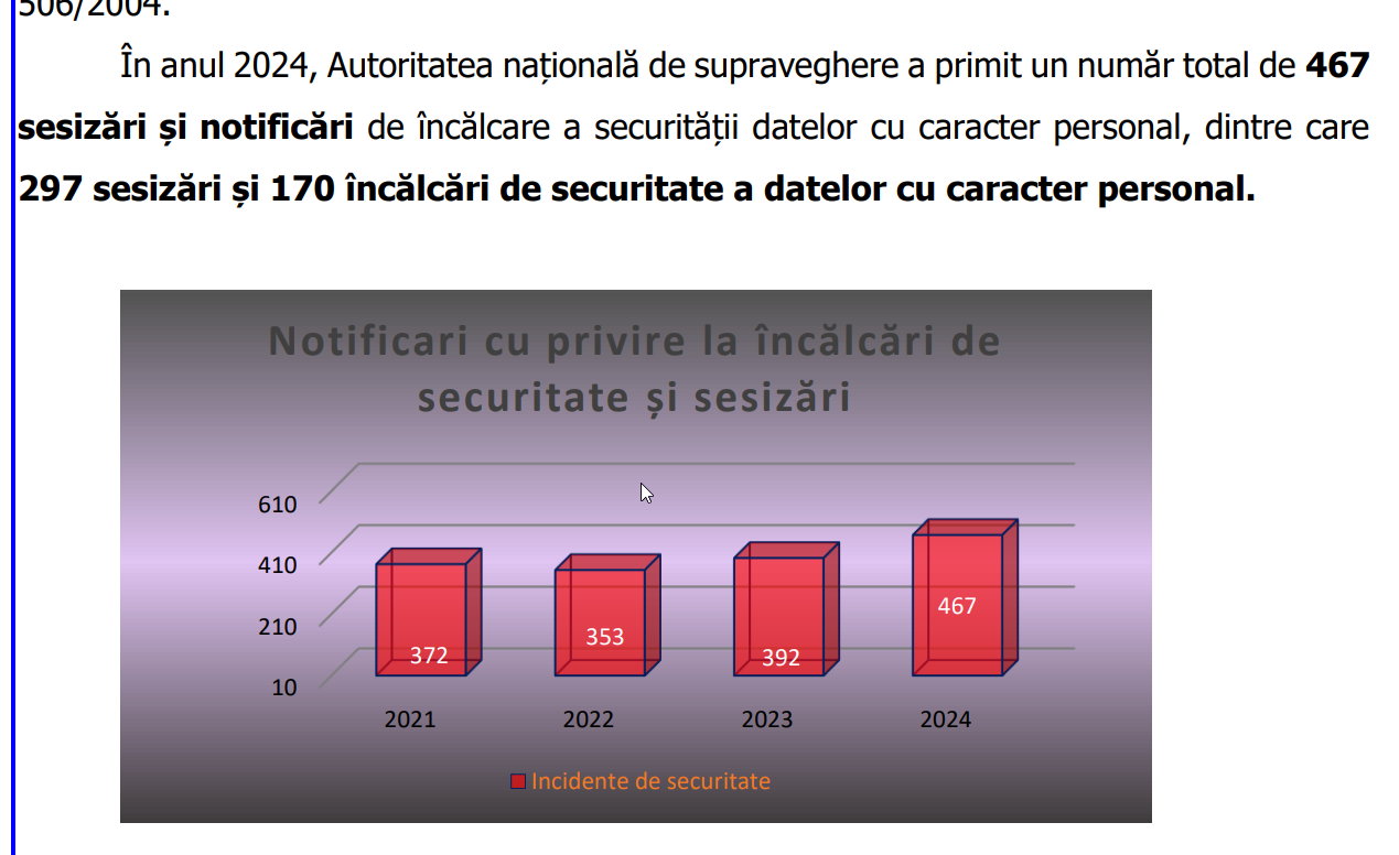 However, most companies do not report events to the ANSPDCP to avoid fines; at least according to ANSPDCP reports, these situations seem to be very few, which indicates to me a selection bias. Romanians tend to hide their faults, and I know that in my own reported vulnerabilities, the ANSPDCP was not notified. I have reported dozens to public and private institutions, all with a high level of risk. I am not aware of any entity being sanctioned.