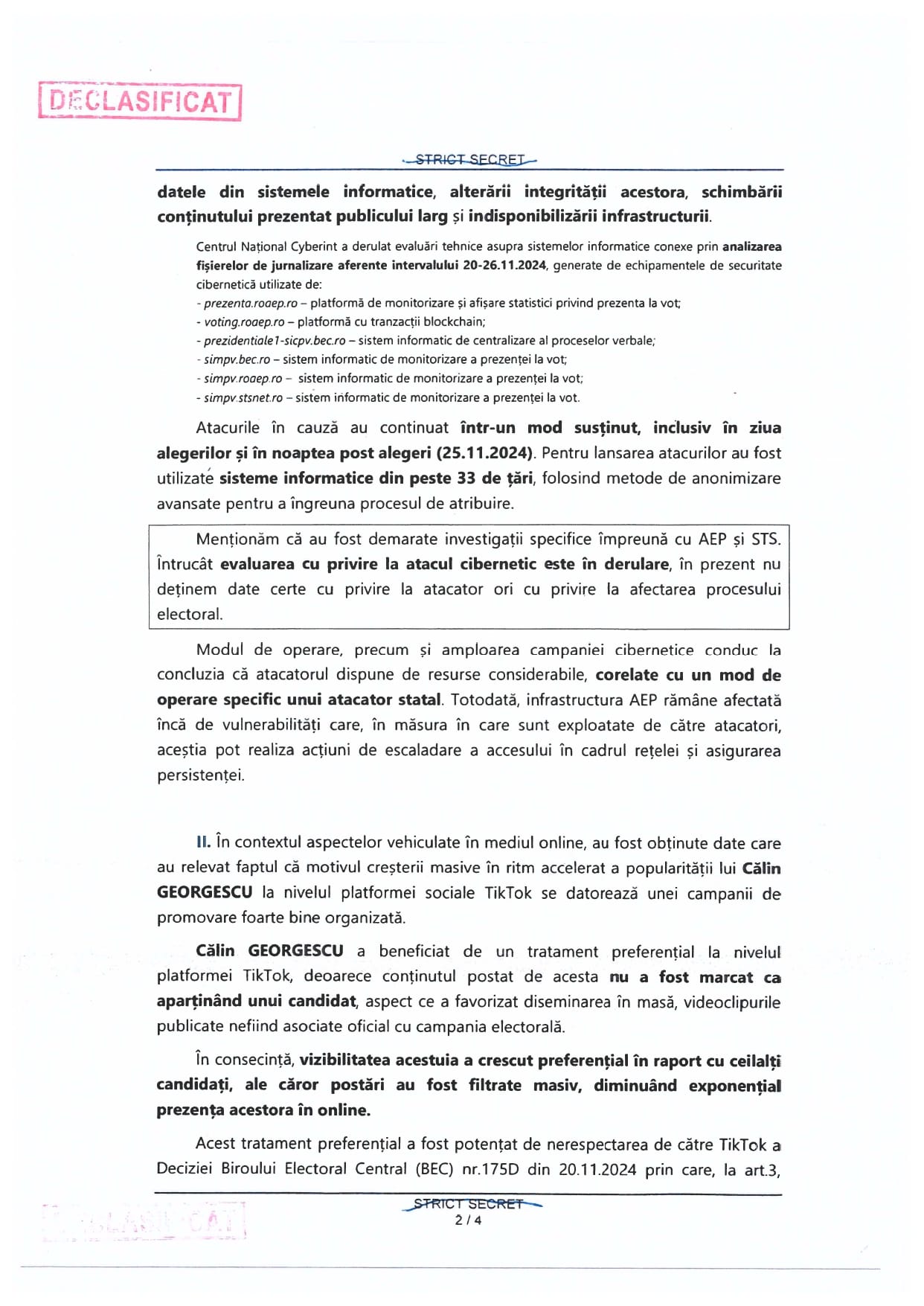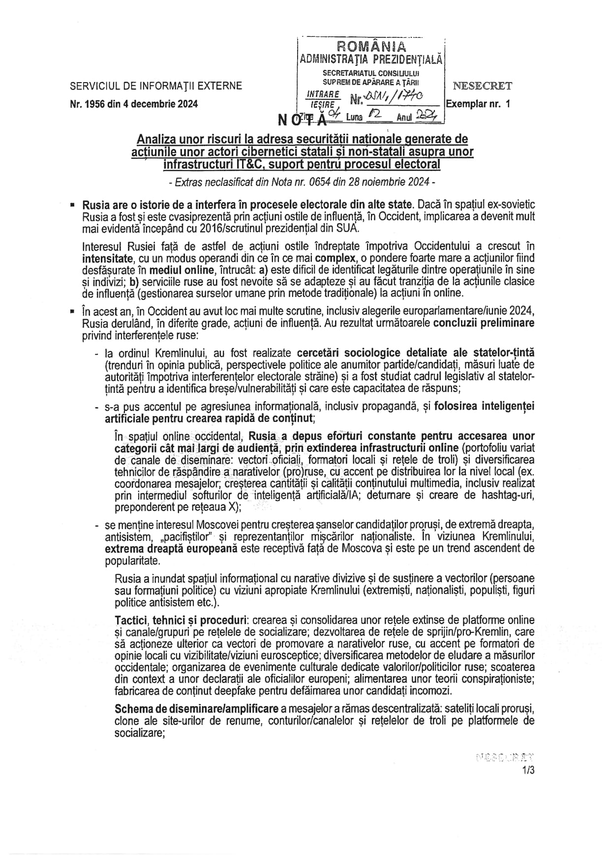 First of all, we have not managed to analyze the legality of the electoral propaganda of candidate Calin Georgescu, nor to discuss the independently obtained evidence that proves or undermines the credibility of the hypothesis of foreign state involvement.