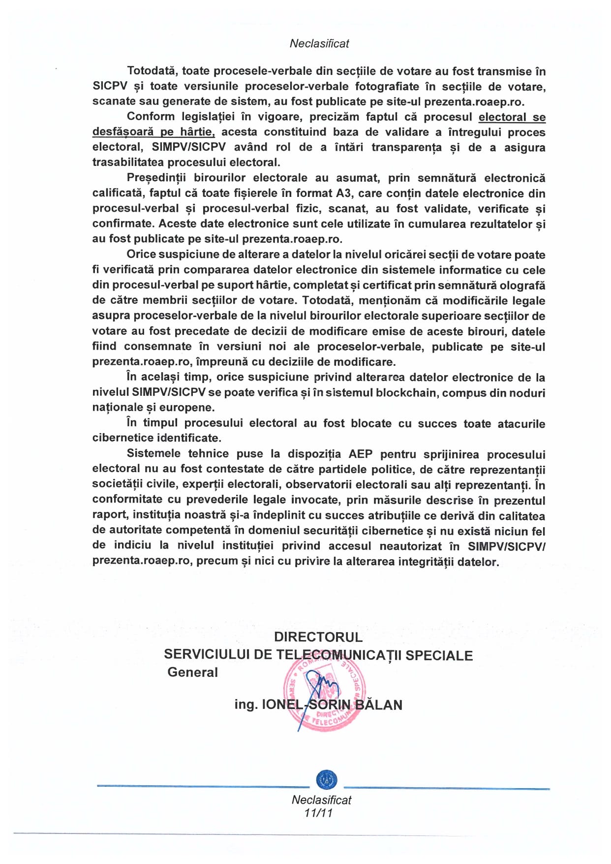 Terheș reported several irregularities. The first concerned the illegal continuation of the electoral campaign online on November 23-24, including on election day. The second involved the use of bots and automated mechanisms to promote candidate Călin Georgescu. The third referred to an alleged fraudulent transfer of votes from candidate Ludovic Orban to Elena-Valerica Lasconi in three polling stations. He also cited the existence of a disproportionate number of null votes (223,132) compared to the difference between candidates, as well as irregular voting on supplementary lists.