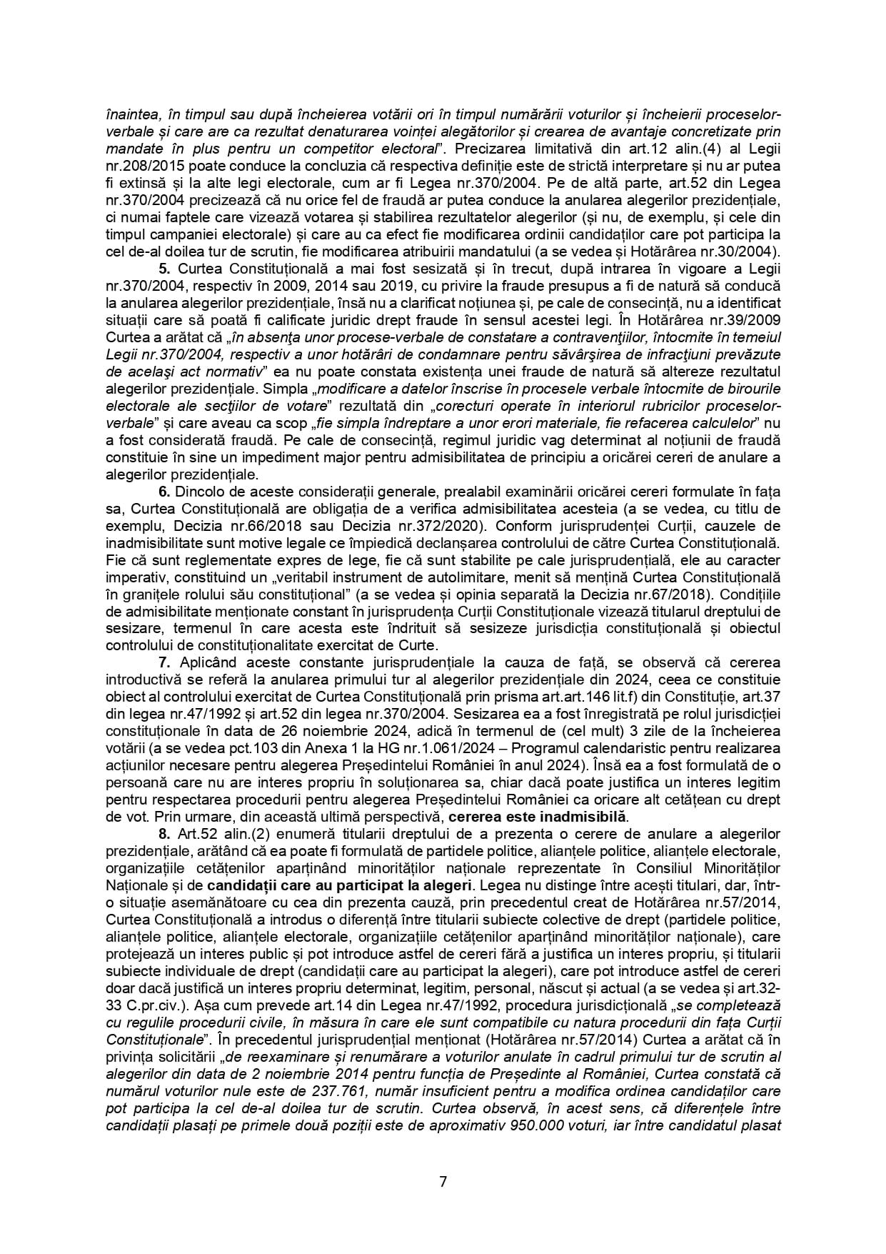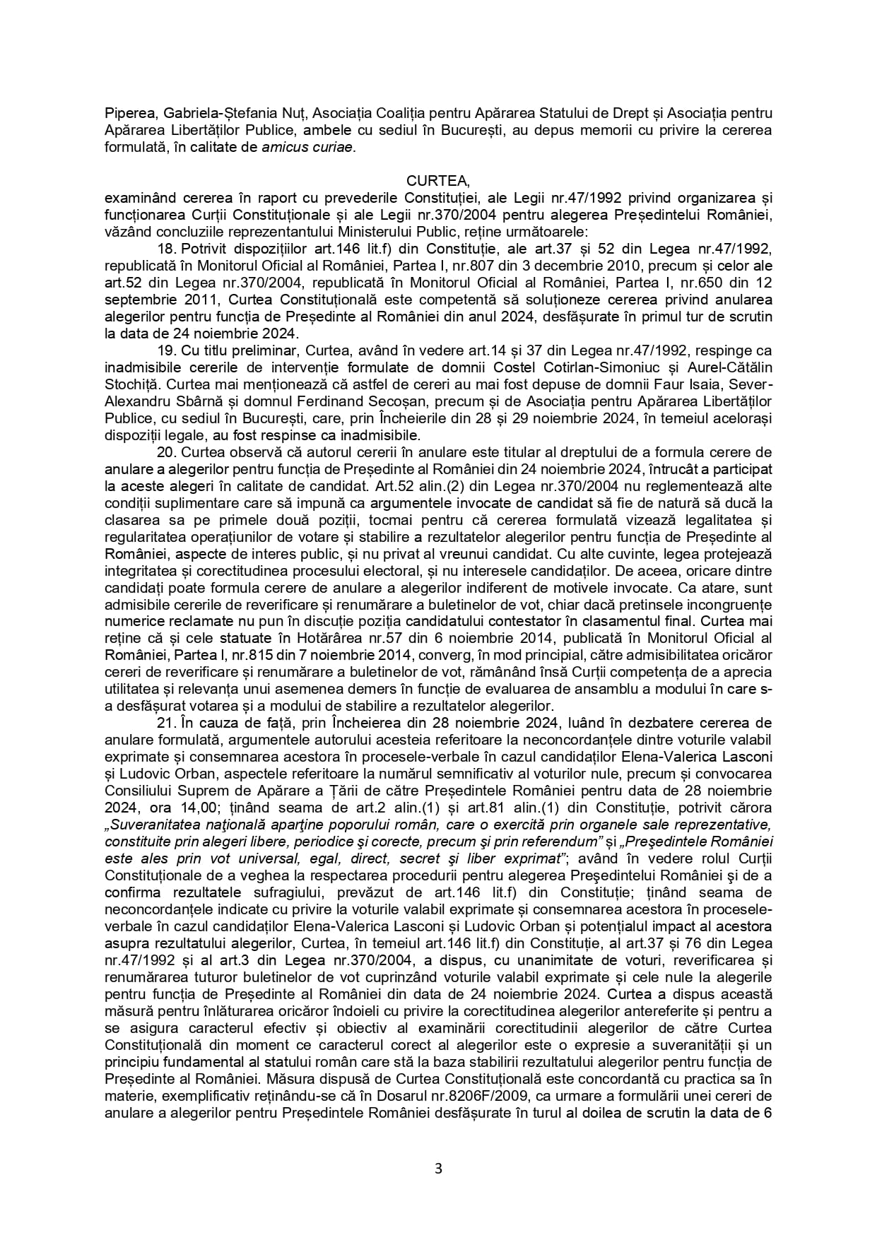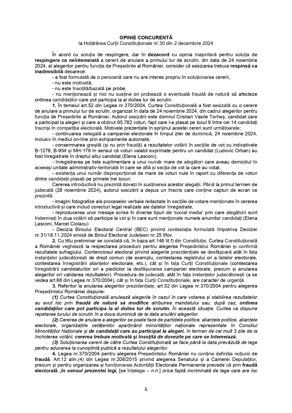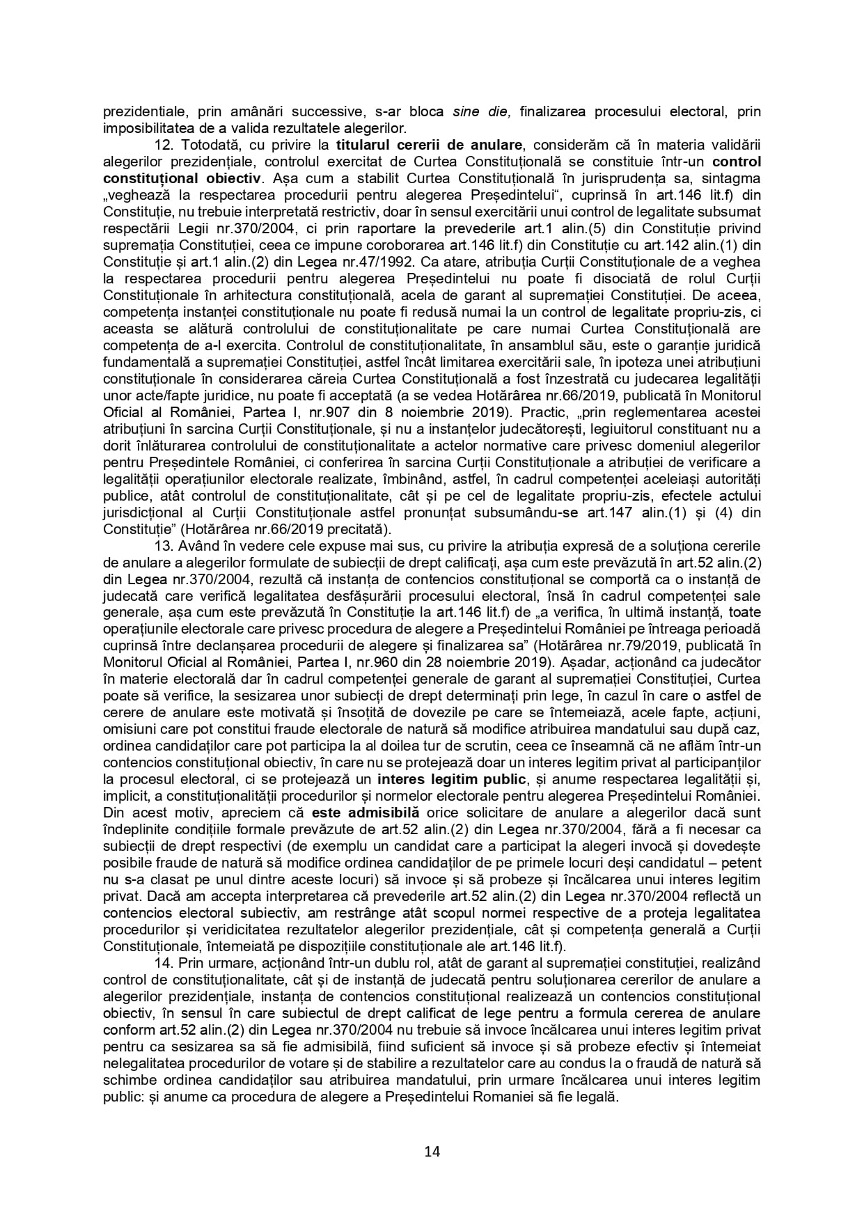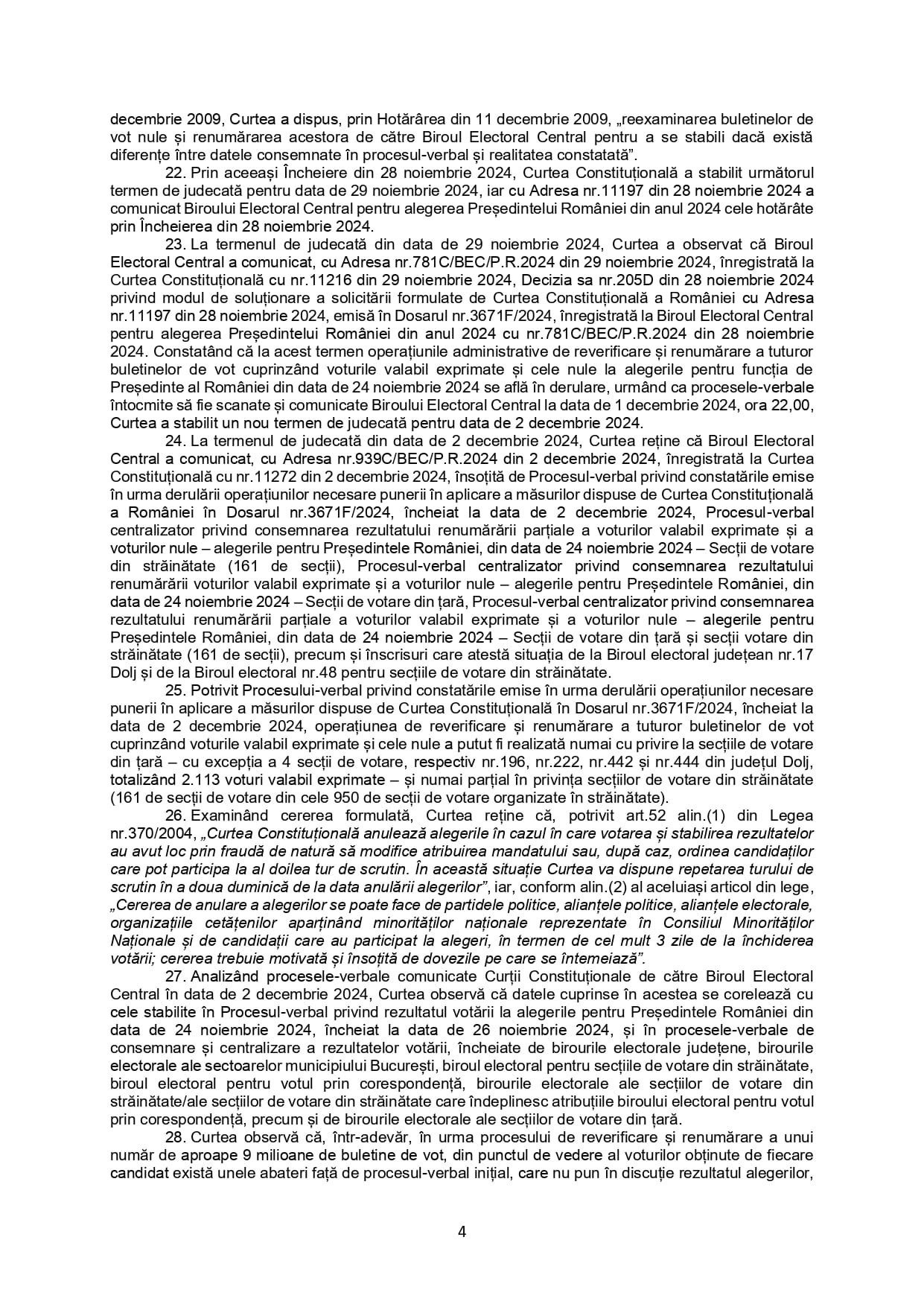 Judge Elena Simina Tănăsescu noted that the request should be dismissed as inadmissible, citing a lack of procedural interest, lack of motivation, and failure to prove fraud. Judge Laura-Iuliana Scântei believed that the request should be dismissed as unfounded without ordering a recount of the votes, a measure she deemed excessive and disproportionate.