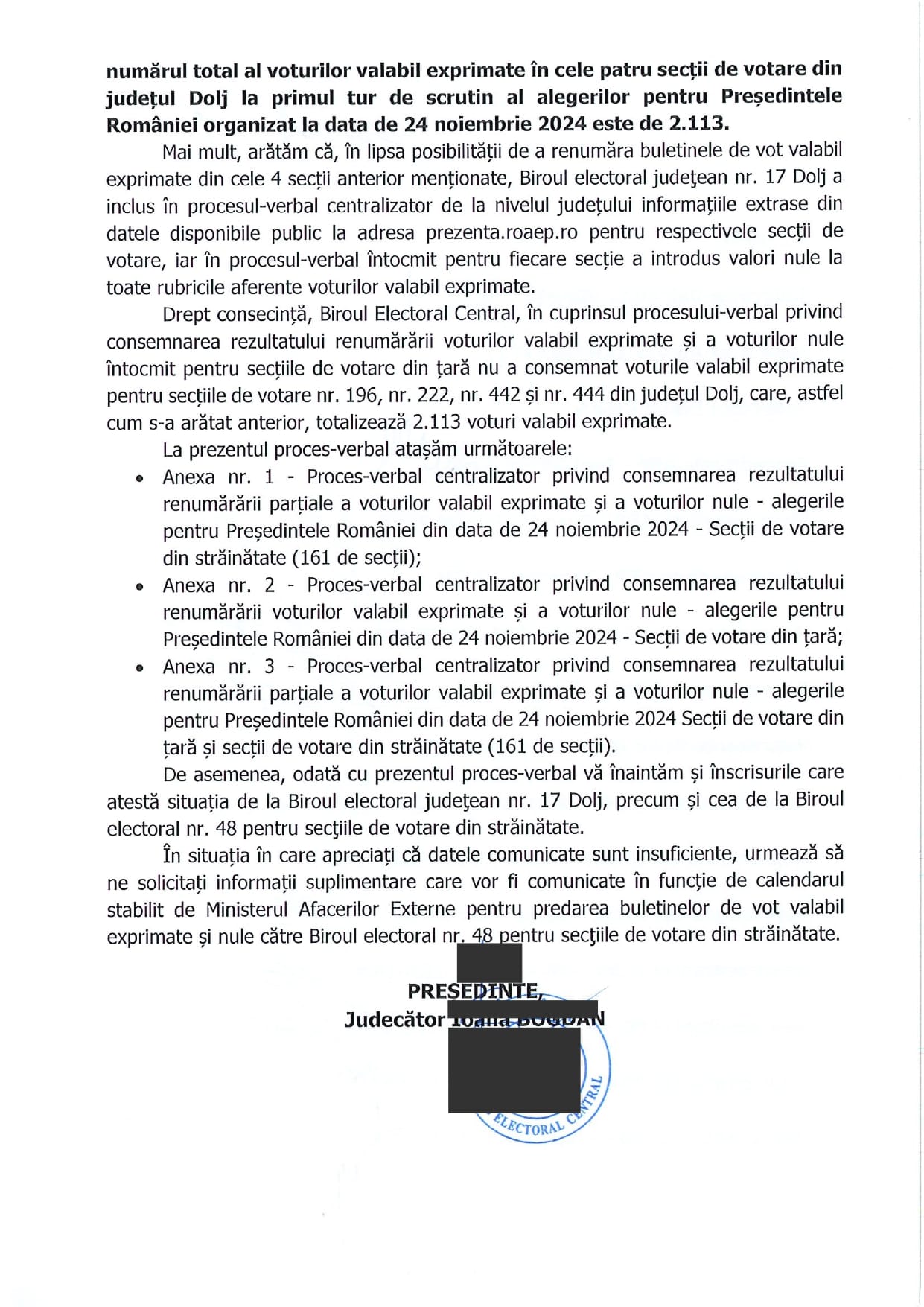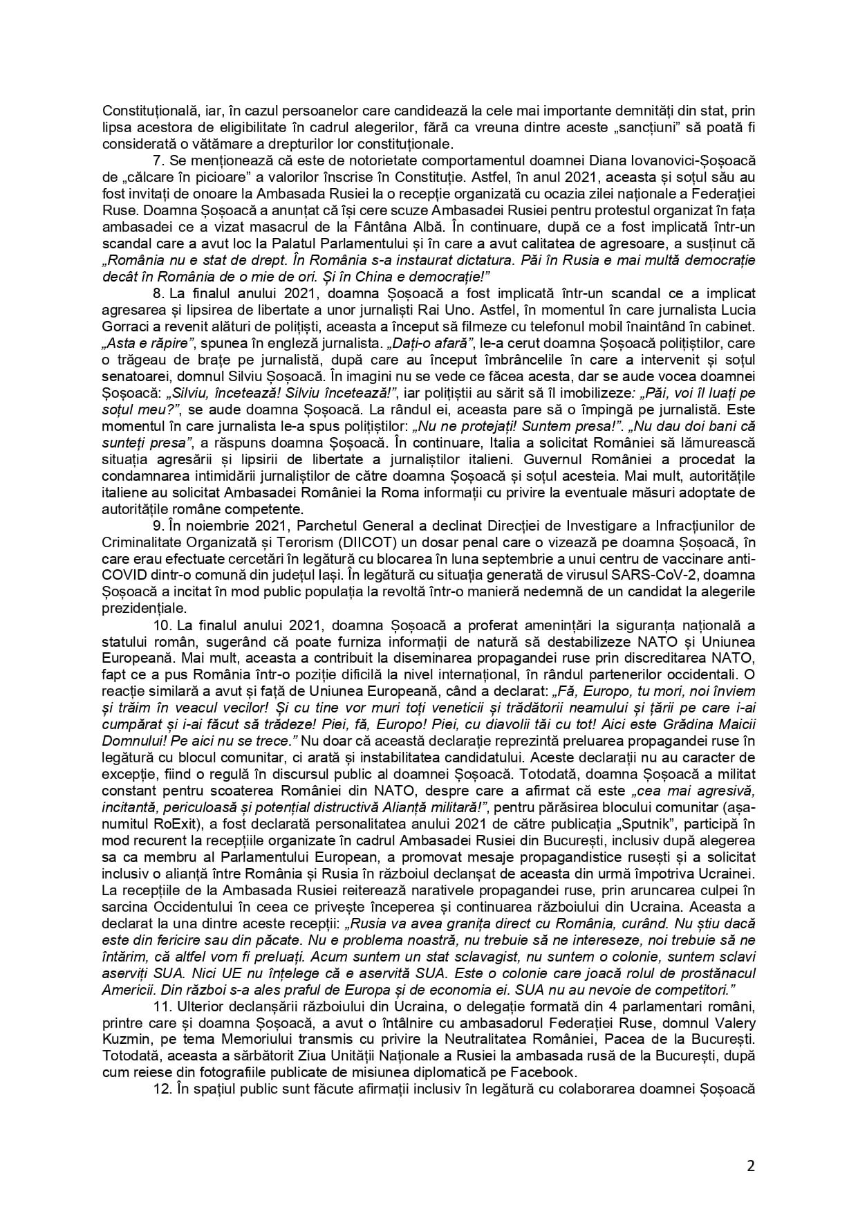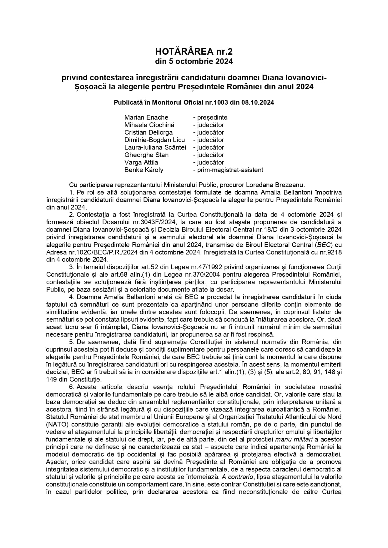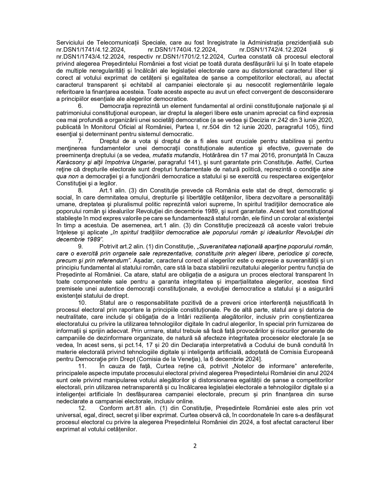 Judge Elena Simina Tănăsescu noted that the request should be dismissed as inadmissible, citing a lack of procedural interest, lack of motivation, and failure to prove fraud. Judge Laura-Iuliana Scântei believed that the request should be dismissed as unfounded without ordering a recount of the votes, a measure she deemed excessive and disproportionate.