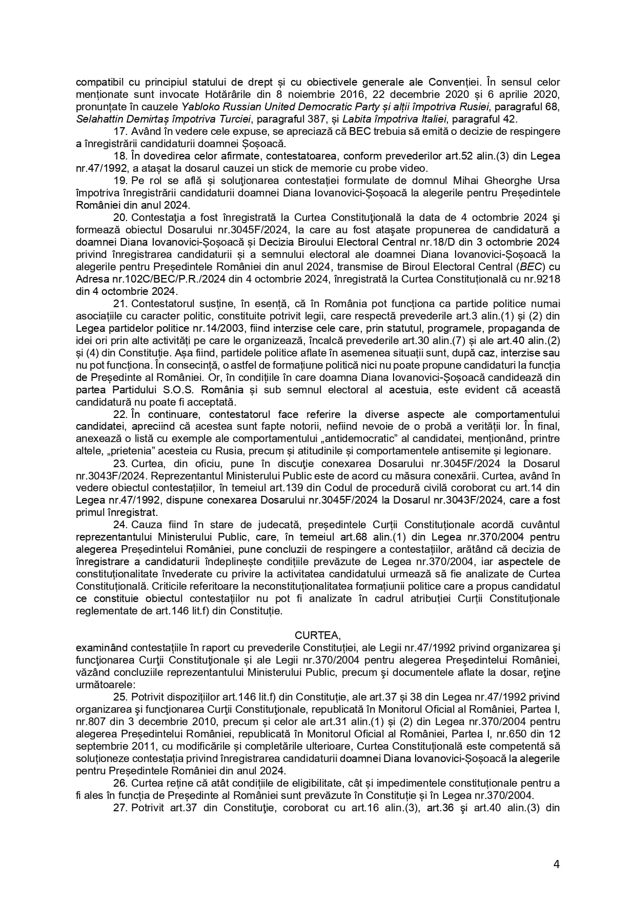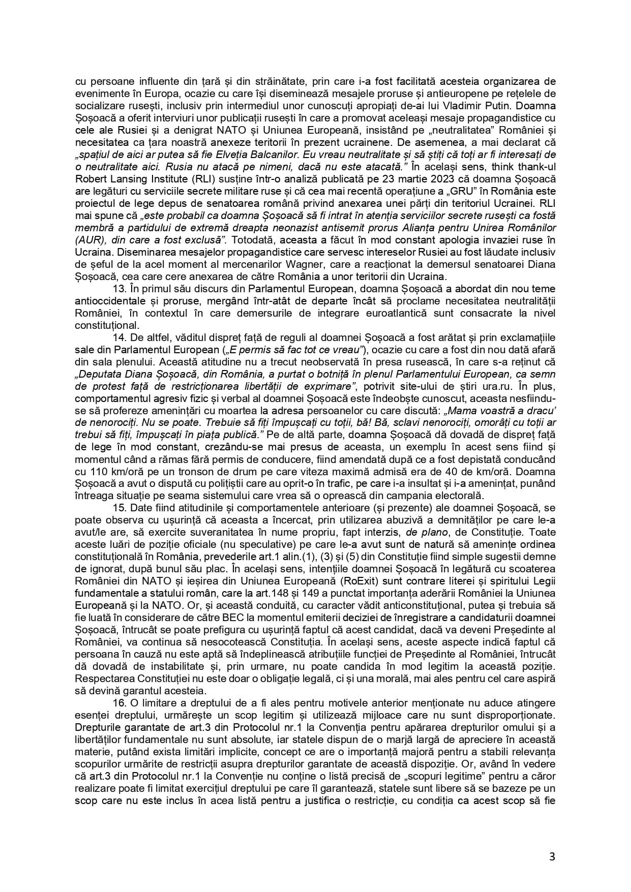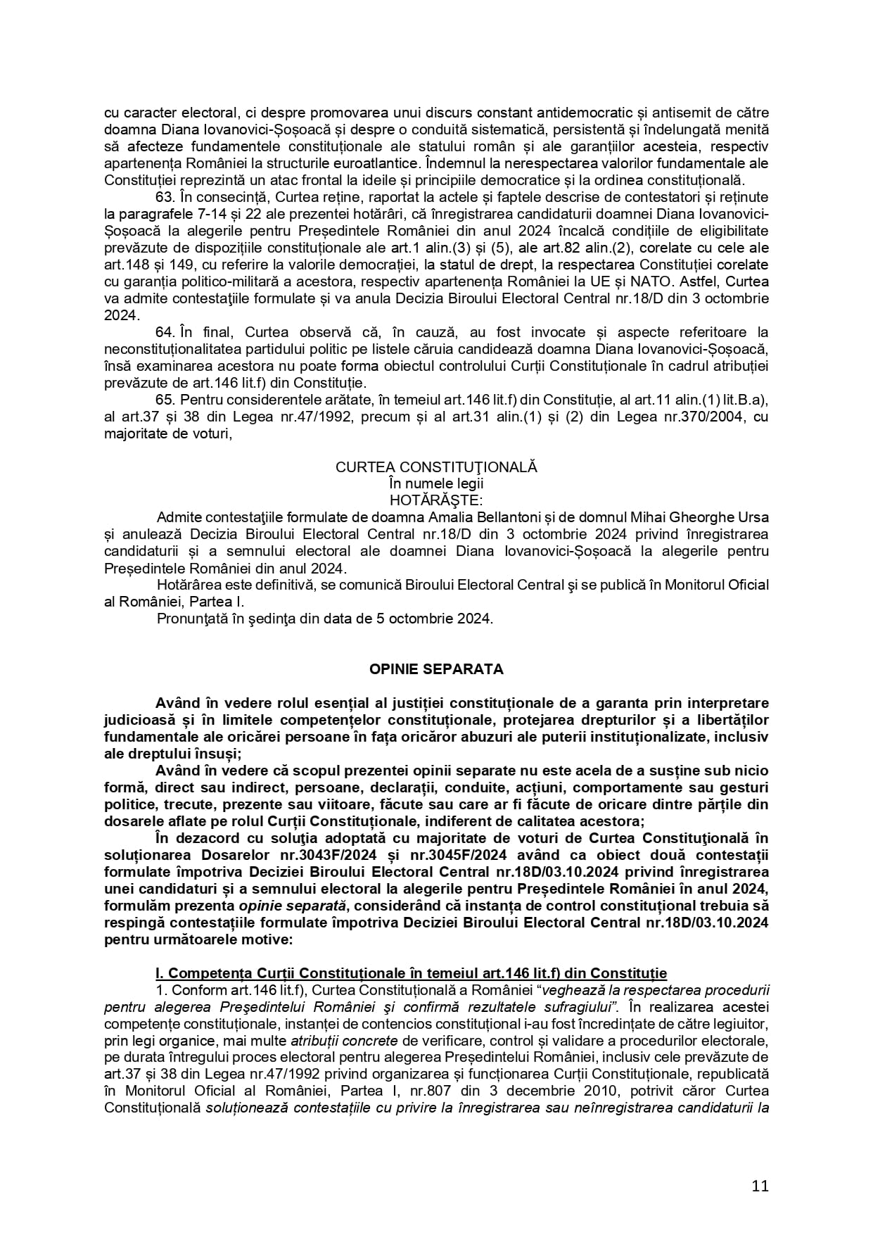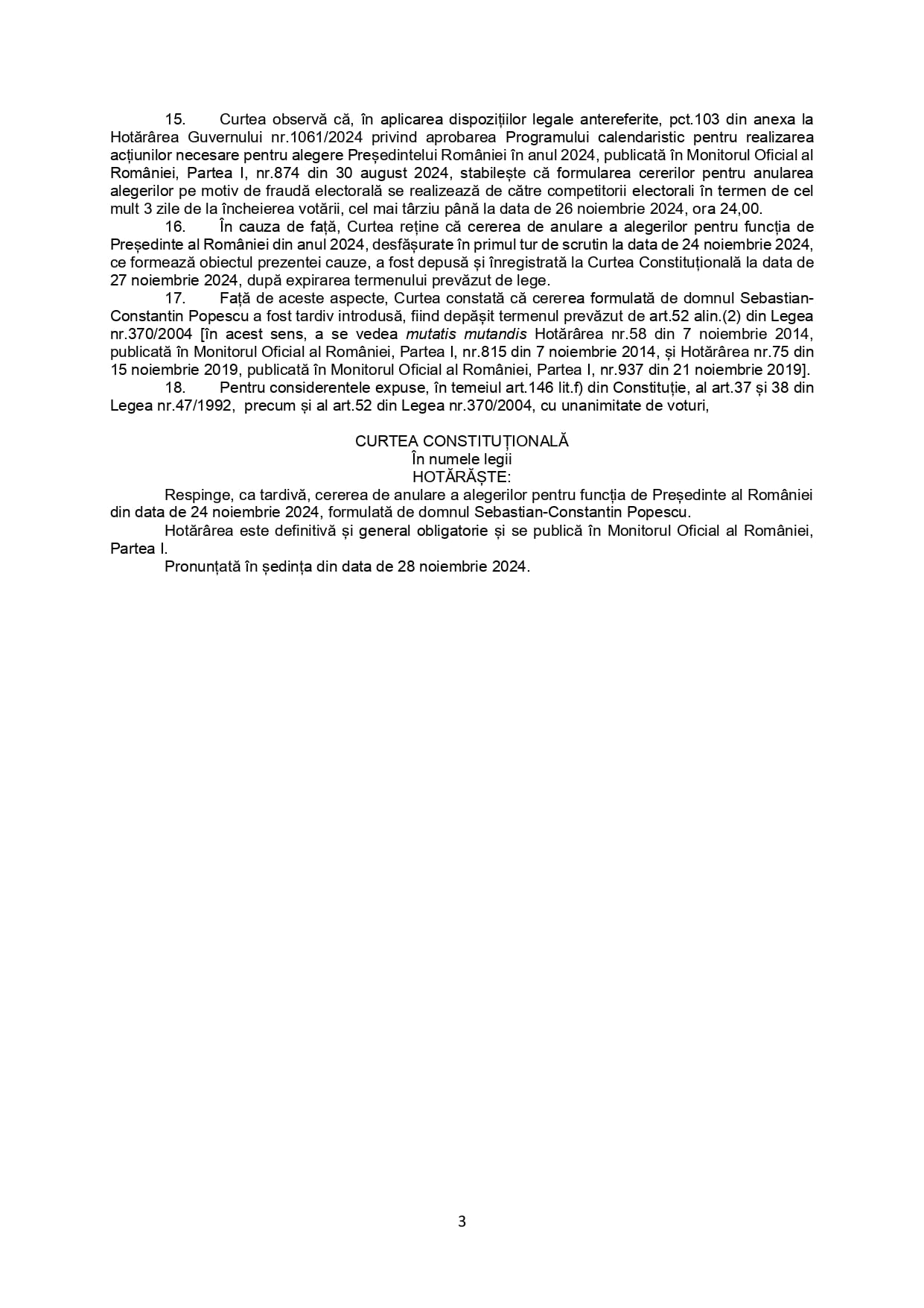 Judge Elena Simina Tănăsescu noted that the request should be dismissed as inadmissible, citing a lack of procedural interest, lack of motivation, and failure to prove fraud. Judge Laura-Iuliana Scântei believed that the request should be dismissed as unfounded without ordering a recount of the votes, a measure she deemed excessive and disproportionate.