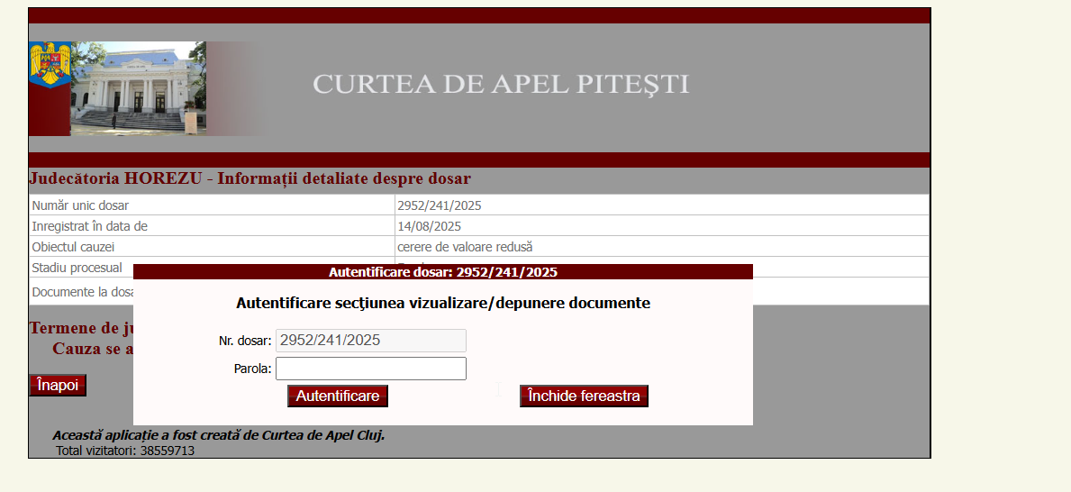 With 3 clicks, and using the phrase "use the password," the case files could be accessed through ReJust.ro